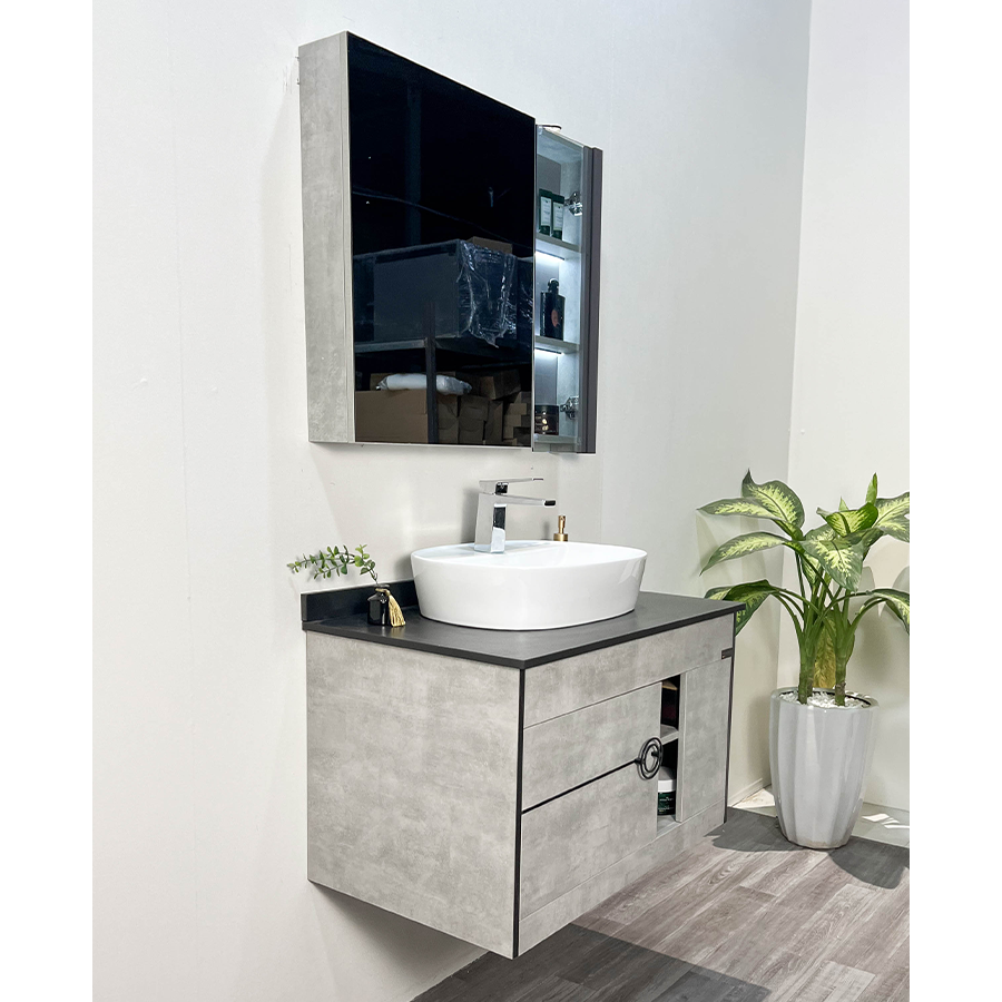 - Kích thước: *Tủ Chậu: 800*500*500 mm *Tủ Gương: 750*650*120 mm ((LED SMART)) - Chất liệu: Plywood E1 nhiệt đới hóa phù hợp với khí hậu châu Á, Kháng nước, chống mối mọt, không bị biến dạng cong vênh. - Mặt bàn đá để chậu nguyên tấm + chậu Lavabo đặt dương bàn đá. - Bản lề giảm chấn 304, Có chu kỳ đóng mở lên đến 500.000. - Tủ gương LED thông minh, cảm biến tự động bật tắt khi có người, chất liệu gương Phôi Bỉ chống ẩm mốc
