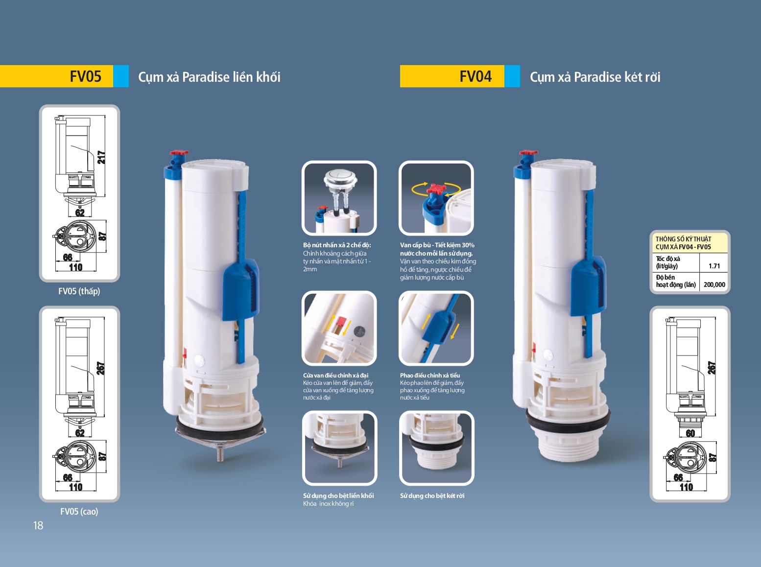 TRỌN BỘ BỘ XẢ 2 NHẤN CHO BỒN CẦU LIỀN KHỐI : VS0503