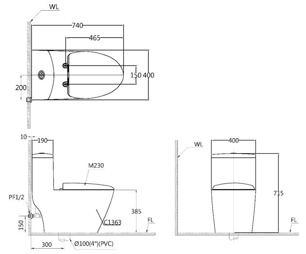 Bồn Cầu 1 Khối CAESAR Nắp Êm CD1363