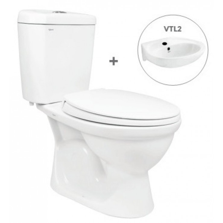 Bồn Cầu 2 Khối VIGLACERA VI88 (PK 2 nhấn, nắp V1102) + Lavabo VTL2