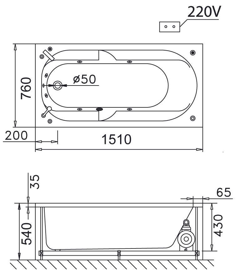 Bồn Tắm 15M Chân Yếm Phải CAESAR AT0150L(R)