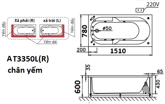 Bồn Tắm Chân Yếm Trái 1500 CAESAR AT3350L(R)