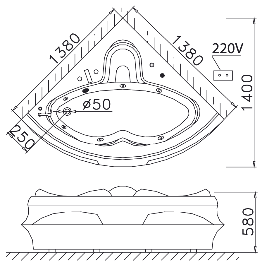 Bồn tắm massage góc không chân yếm CAESAR 1380cm MT5132A