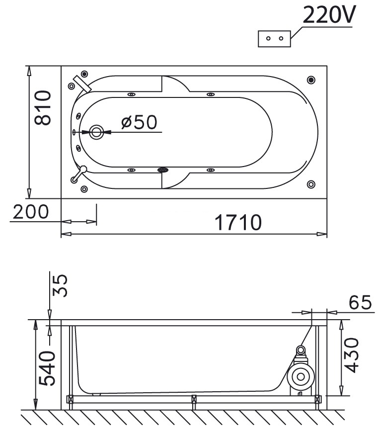 Bồn Tắm Massage Xây 1700cm CAESAR MT0270
