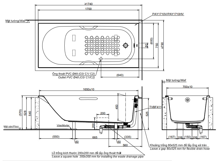 Bồn Tắm TOTO PAY1710HV+TVBF411