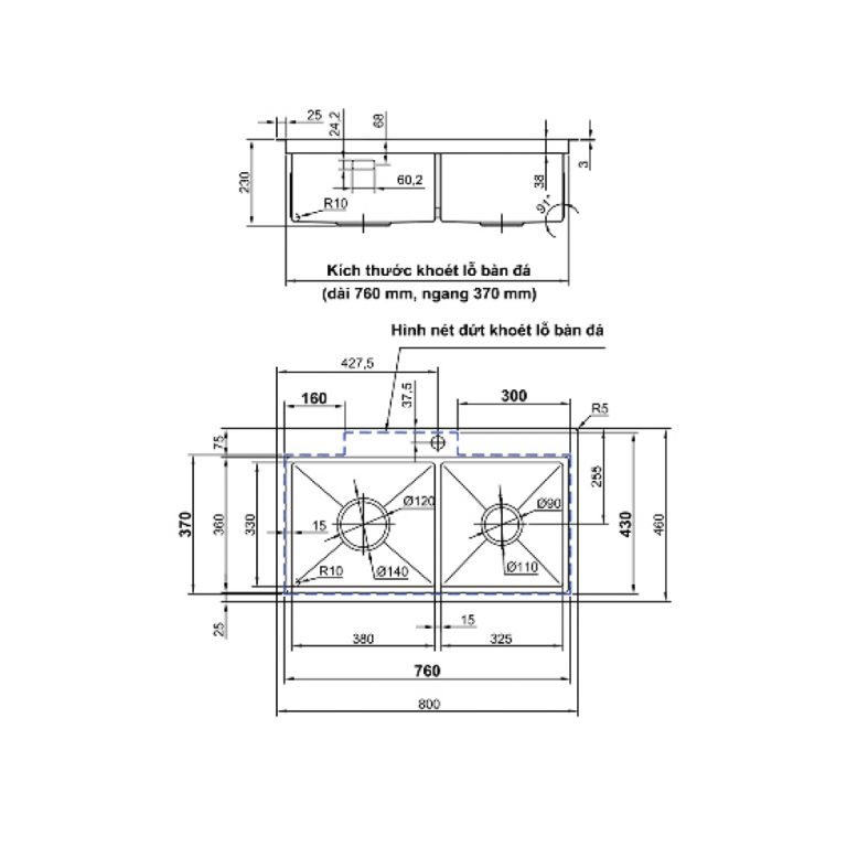 Chậu chén inox với thiết kế hiện đại, sang trọng