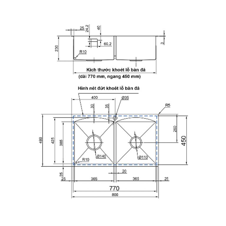 ✔ Chậu chén inox với thiết kế hiện đại, sang trọng