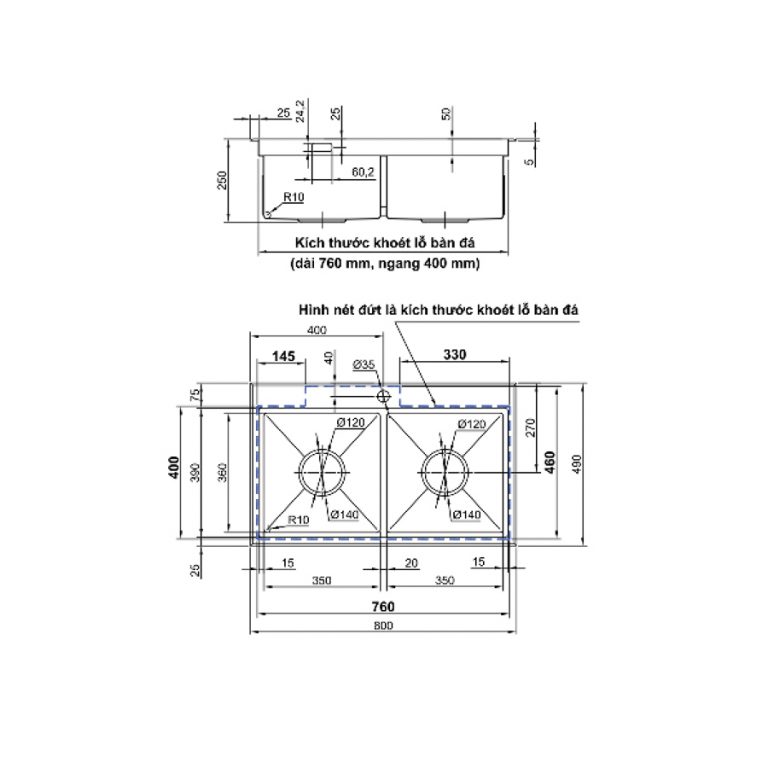 Chậu chén inox với thiết kế hiện đại, sang trọng