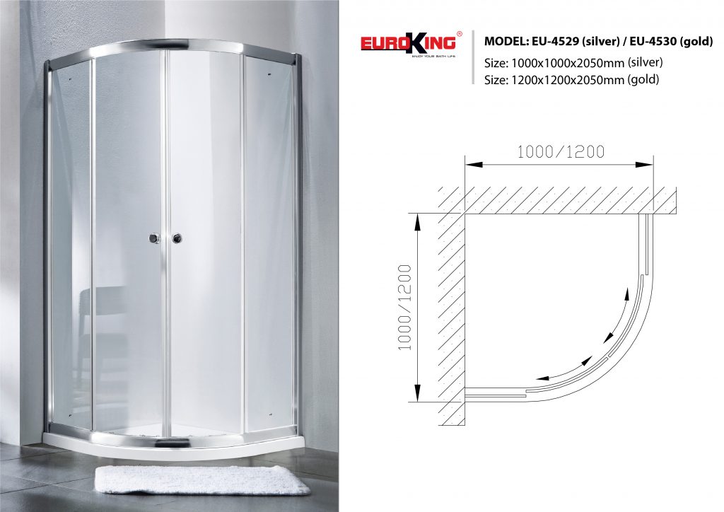 - Kiểu dáng hiện đại: với thiết kế của hình bán nguyệt, phòng tắm vách kính EuroKing EU – 4530 tạo nên một không gian nổi bật trong phòng tắm, tiết kiệm không gian, tận dụng những góc phòng có thể bị bỏ quên.