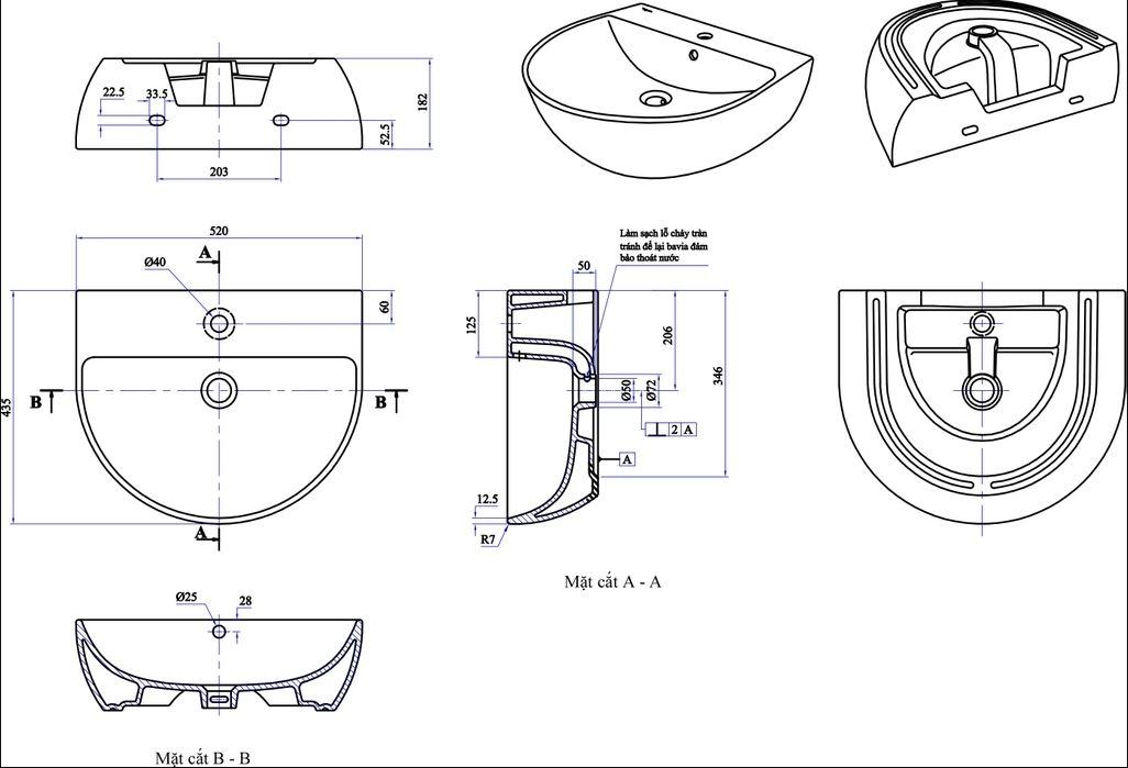 Lavabo Treo Tường + Chân Treo VIGLACERA V37