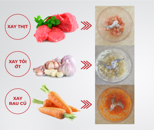- Máy xay đa năng: rau củ, tỏi ớt, hành, thịt