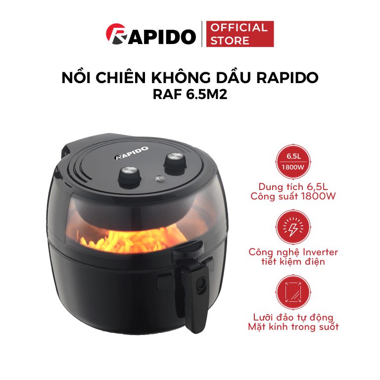 Đầu tiên và duy nhất tại Việt Nam, một sản phẩm nồi chiên không dầu cho người Việt, do người Việt đã chính thức ra đời. nồi chiên không dầu Rapido RAF – 6.5M2 với dung tích 6.5L giúp việc chiên rán trở nên thật dễ dàng và nhanh chóng.