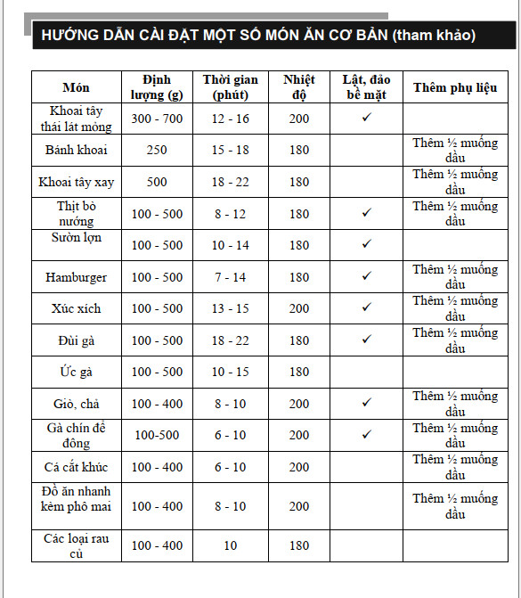 – Nồi có kèm theo sách hướng dẫn đầy đủ, bạn có thể tham khảo một số công thức nấu ăn dưới đây.