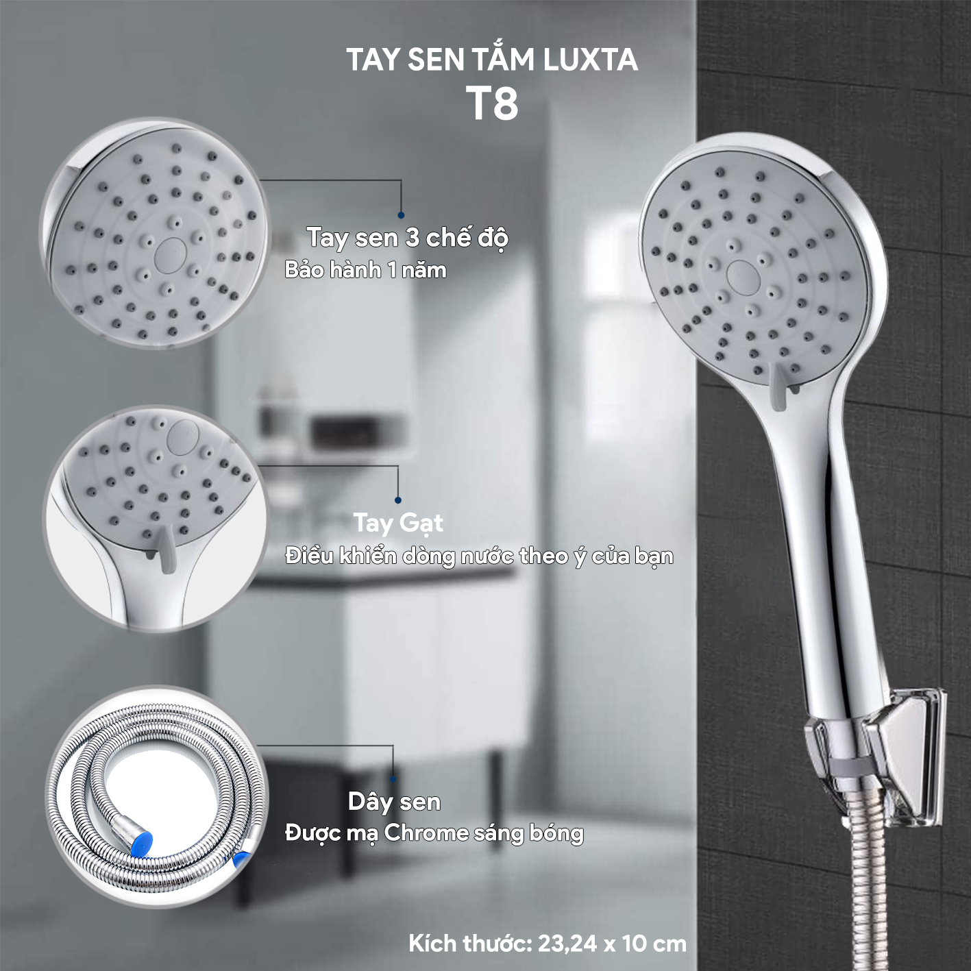 Tay sen tắm cao cấp nhựa ABS mạ chrome 3 chế độ LUXTA TN27