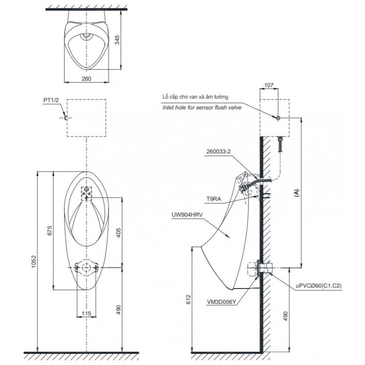 Bồn tiểu nam treo tường TOTO UT904R