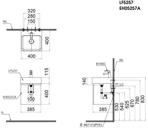 Tủ Treo Phòng Tắm CAESAR (Chưa gồm Lavabo) EH05257AWV