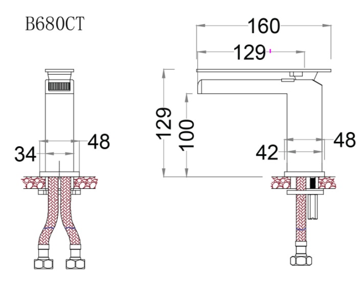 Vòi Lavabo Nóng Lạnh 1 Chân CAESAR Đèn (không dùng Điện) B680CT