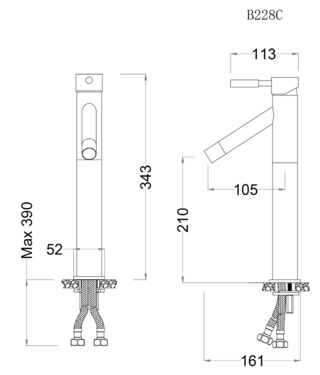 - Vòi lavabo nóng lạnh Caesar B228C bao gồm bộ xả dành cho chậu đặt bàn của hãng thiết bị vệ sinh Caesar