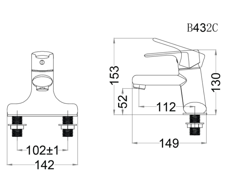 Bản vẽ kỹ thuật vòi chậu lavabo nóng lạnh caesar B432 CP