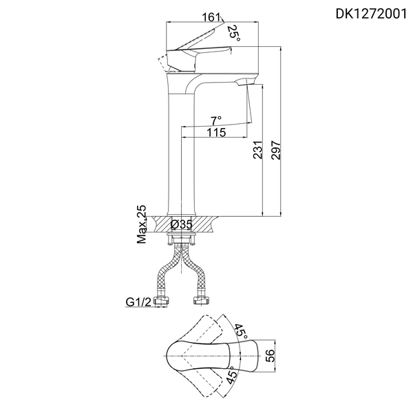 Bản vẽ kỹ thuật vòi lavabo thân cao DK1272001