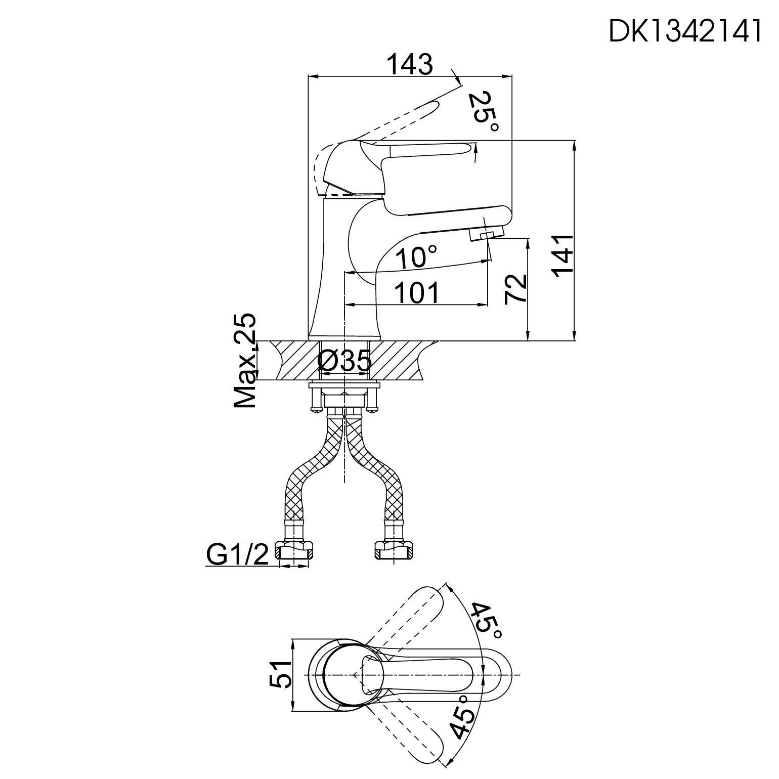 Bản vẽ kỹ thuật vòi lavabo DK1342141