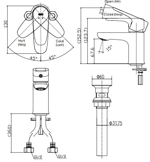 Vòi Lavabo Nóng Lạnh INAX LFV-1112S
