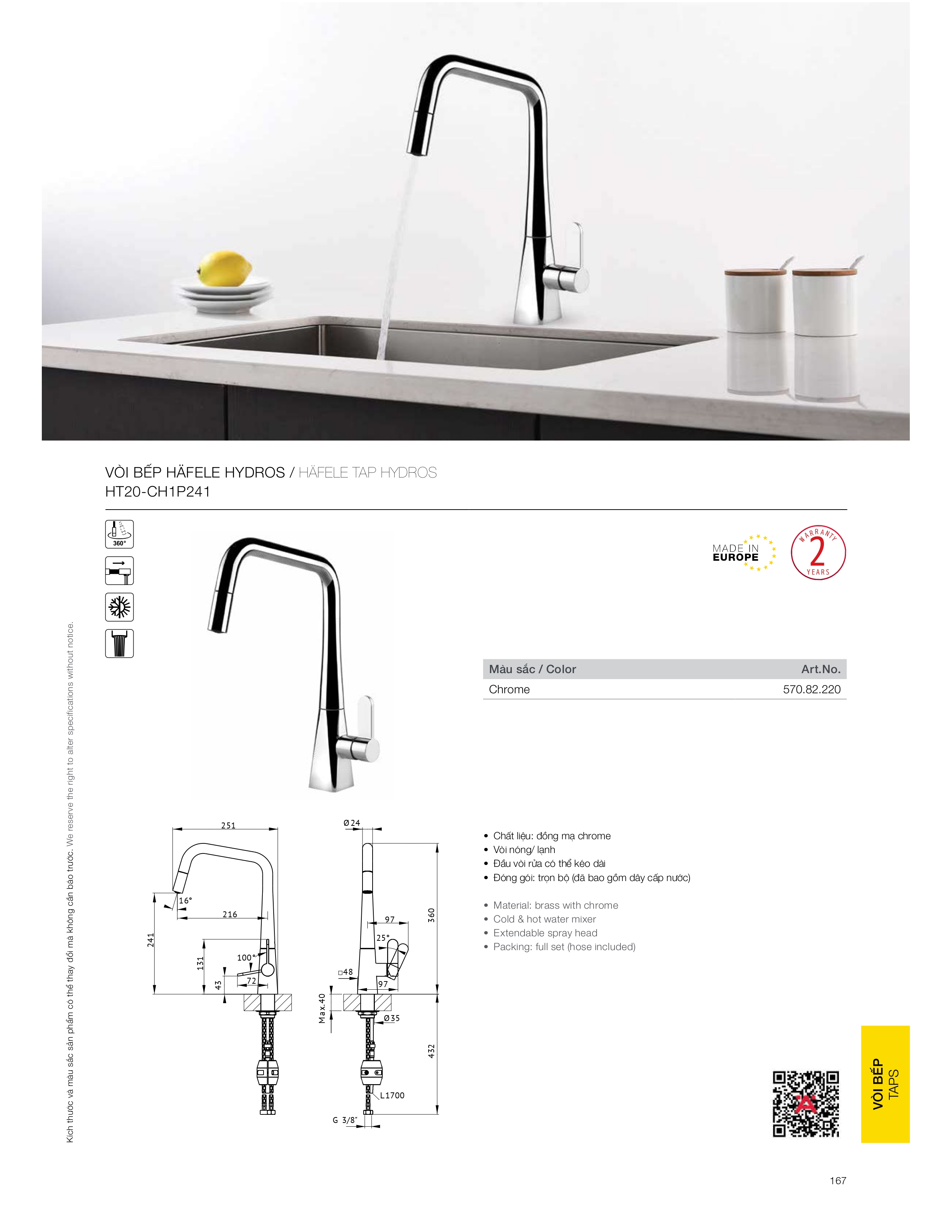 Đầu vòi kéo ra: Bạn có thể kéo dài đầu vòi đến bất cứ nơi nào bạn muốn để vệ sinh dễ dàng hơn