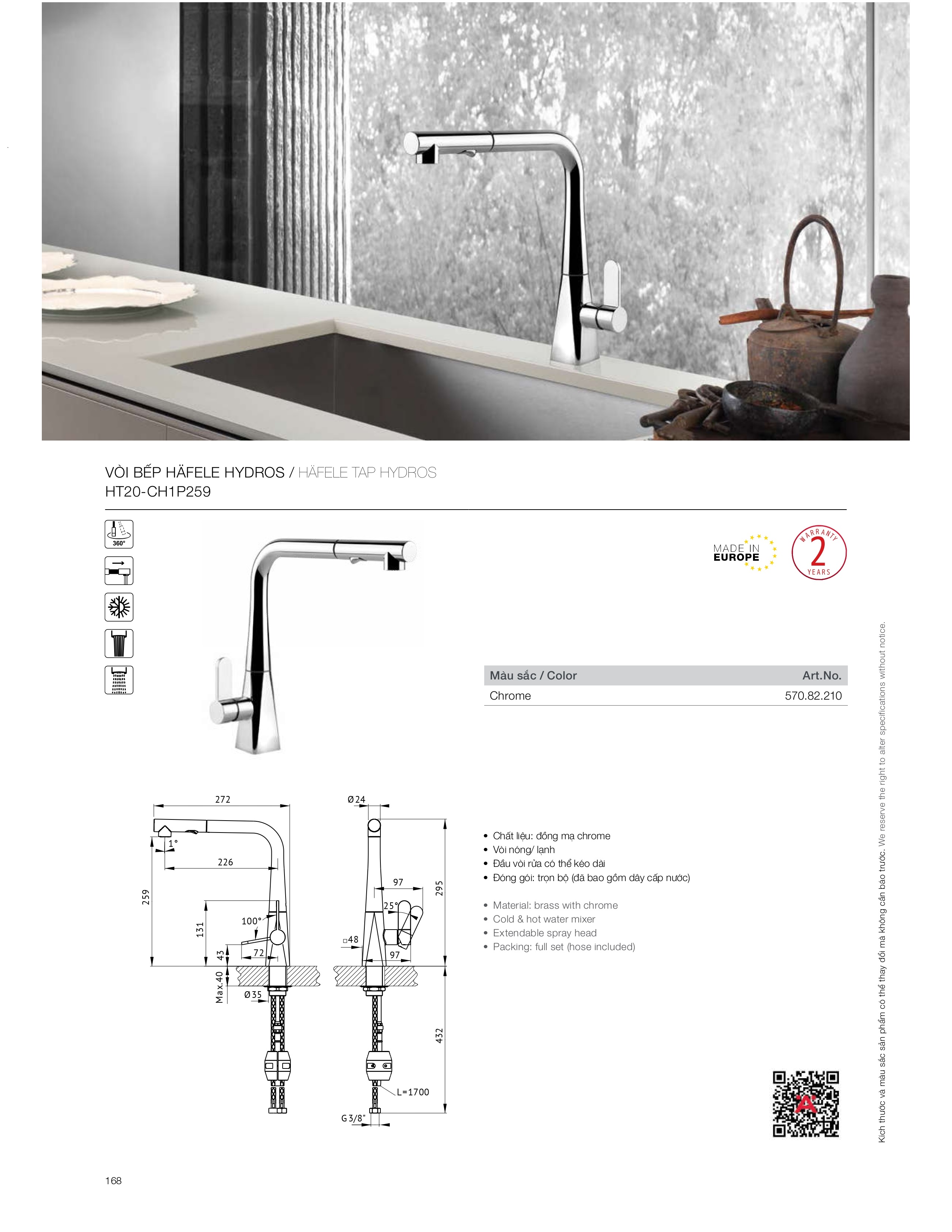 Đầu vòi kéo ra: Bạn có thể kéo dài đầu vòi đến bất cứ nơi nào bạn muốn để vệ sinh dễ dàng hơn