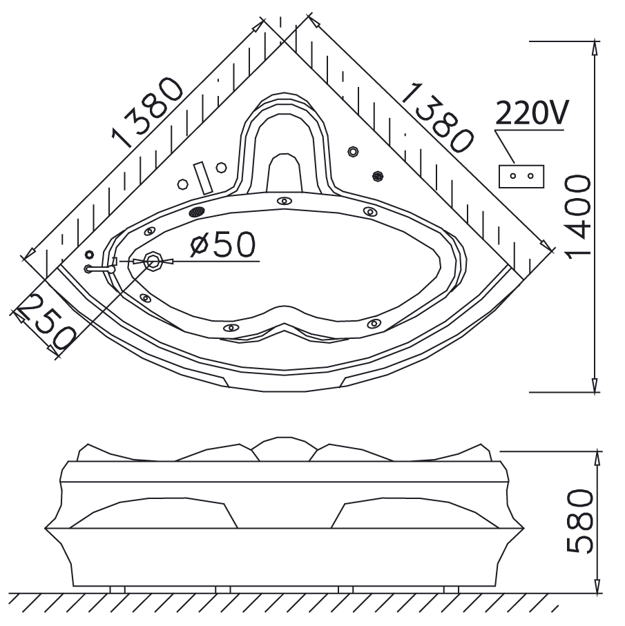 Bồn tắm góc có chân yếm CAESAR AT5132
