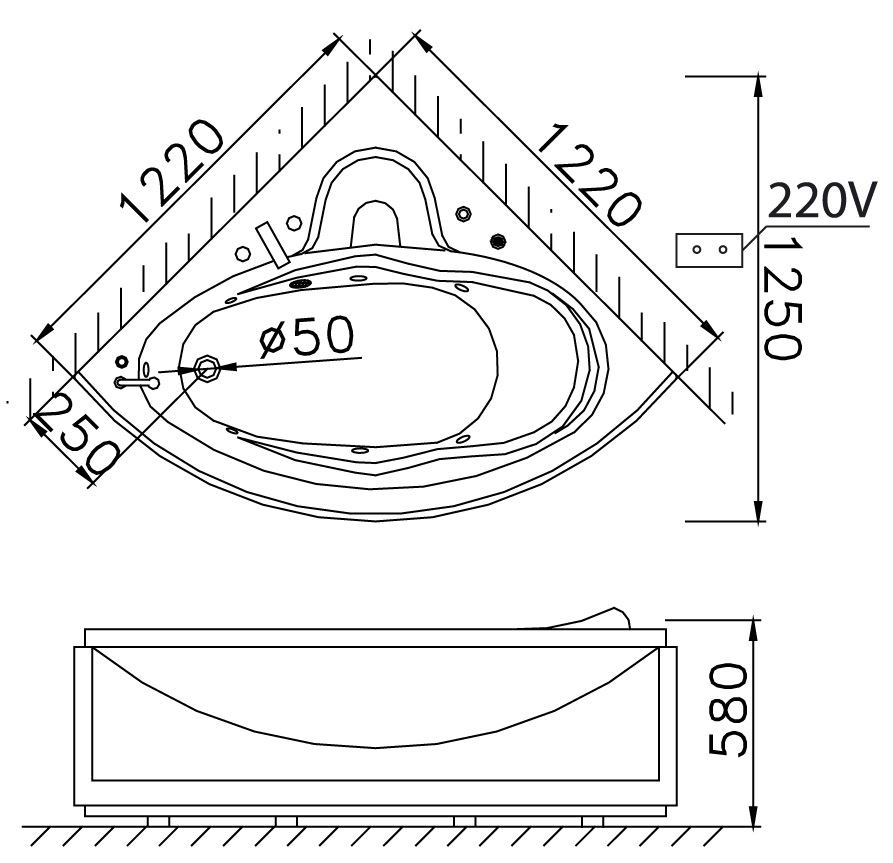 Bồn tắm góc massage không chân yếm 1220cm CAESAR MT5120A
