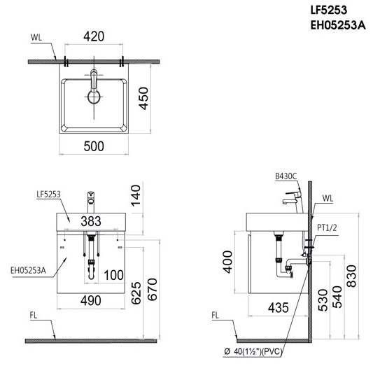 Tủ chậu lavabo Treo tường CAESAR (Chưa gồm Lavabo) EH05253ATGV