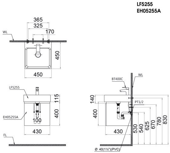 Tủ chậu lavabo Treo Tường CAESAR (Chưa gồm Lavabo) EH05255ATGV