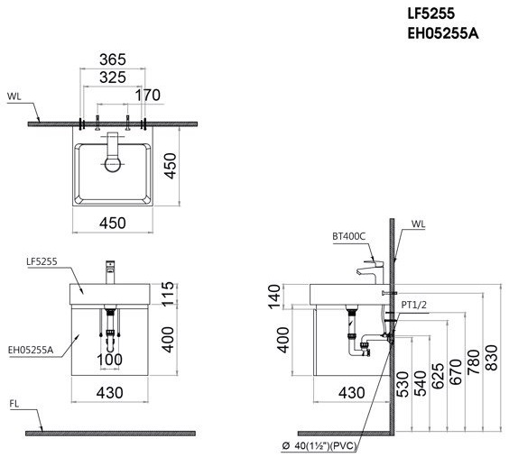 Tủ Treo Phòng Tắm CAESAR (Chưa gồm Lavabo) EH05255AWV