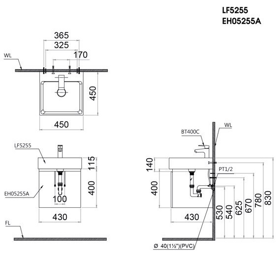 Tủ Treo Phòng Tắm CAESAR (Chưa gồm Lavabo) màu trắng EH05255AV