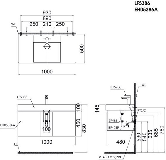 Tủ Treo Phòng Tắm CAESAR (Chưa gồm Lavabo) màu trắng EH05386AV