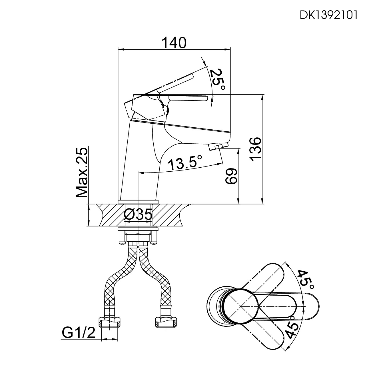 Bản vẽ kỹ thuật vòi lavabo DK1392101