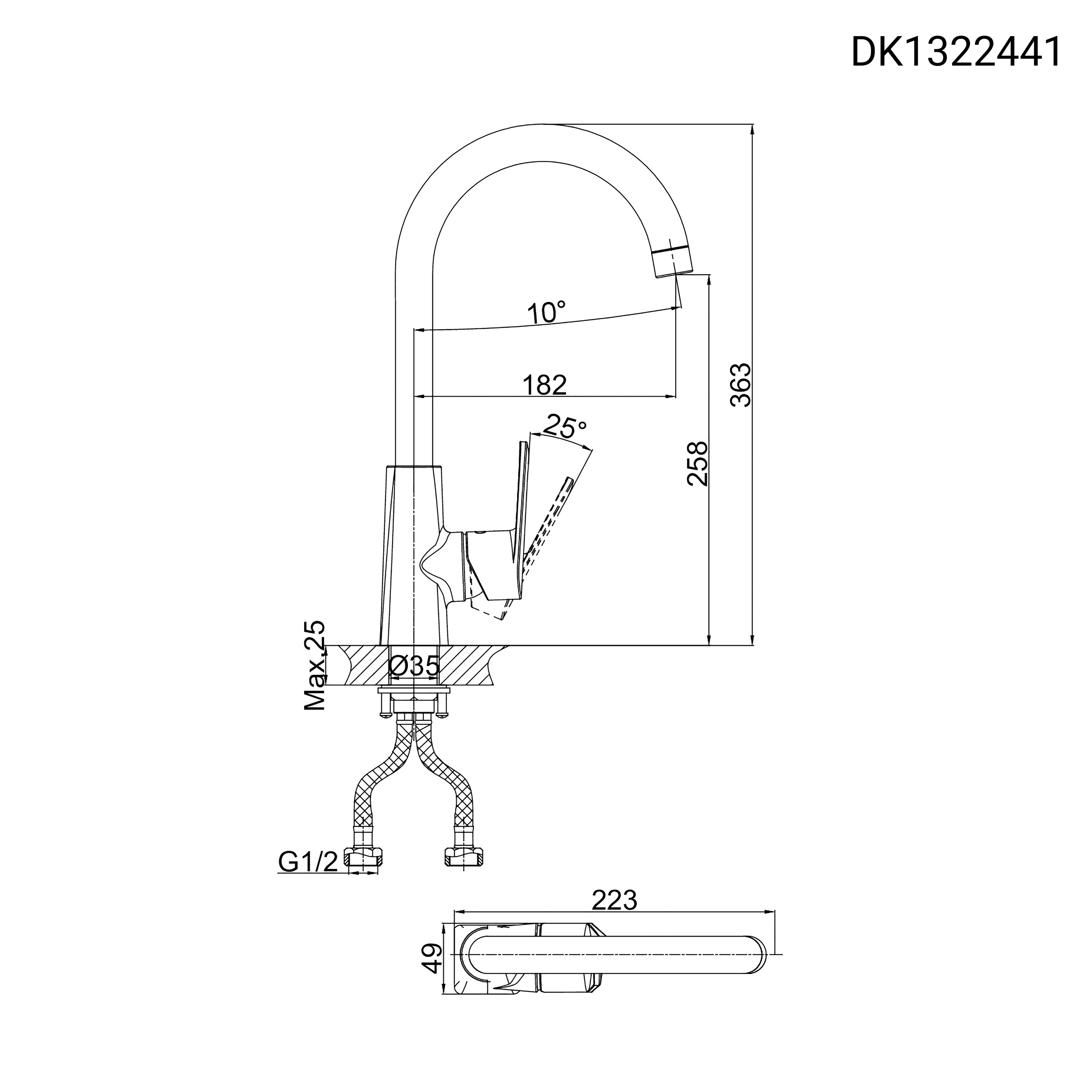 Bản vẽ kỹ thuật vòi rửa bát DK1322441